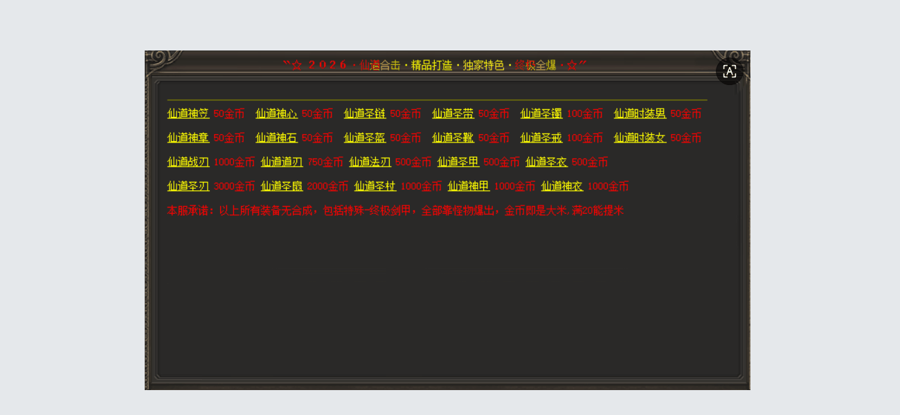 ★【游戏特色】:» 全服只有元宝和金币,时间为王,谁说散人不能打到终极、终极剑甲全部爆。